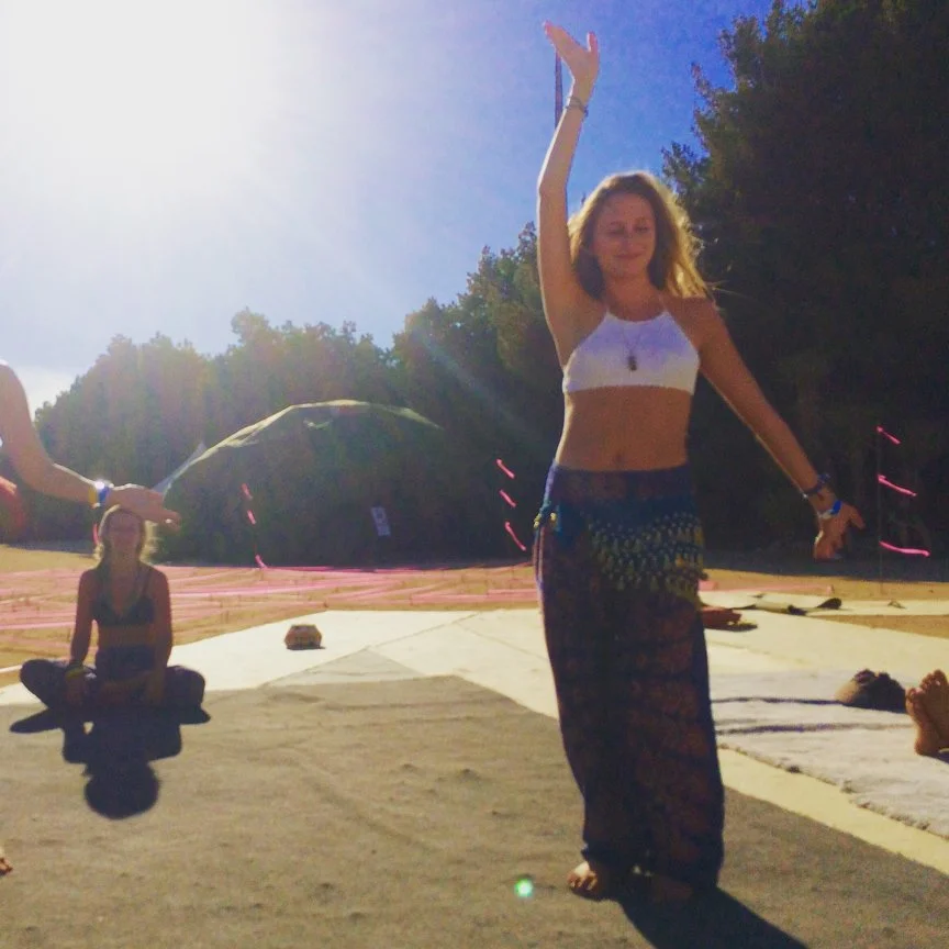 What to Wear: Yoga clothes or a bra style top and a flow-y skirt. Bring a layer to put on after the workout. Wear sunscreen if you have very sensitive skin. If you have a hip scarf please bring it. I have some to wear if you don't. Please bring your own water bottle too!