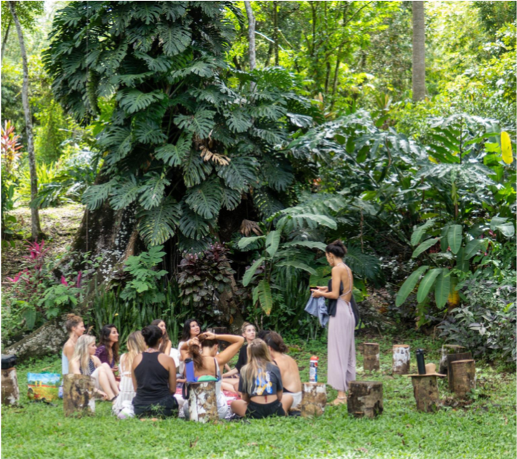 We'll laugh, cry, shake it out, lie under waterfalls, feast on tropical fruit, and root into what’s real.